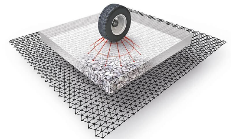 土工格栅在360°方向上均匀分布荷载,而不发生弹性变形。